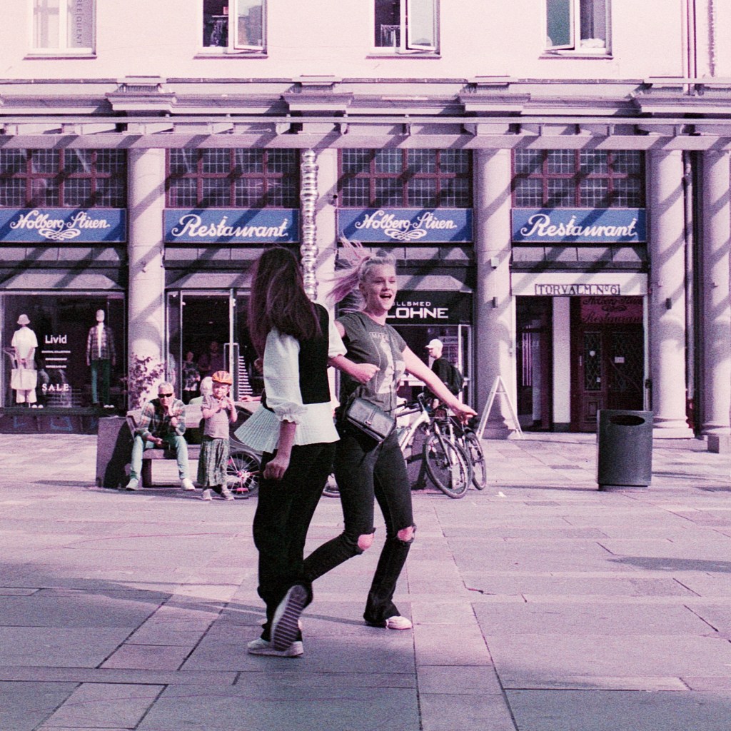 A street performer played something tender. One girl reached for the other, wordless. The offer was simple: dance with me. She did — and for a moment, nothing else existed. Just laughter, motion, and a rhythm only they could hear.